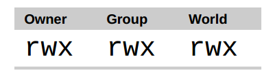 | x | Allows a file to be treated as a program and executed. Program files written in scripting languages must also be set as readable to be executed. | Allows a directory to be entered, e.g., cd directory. |